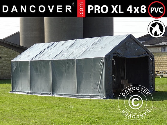 Lagertelt PRO 4x8x2,5x3,6m, PVC, Grå