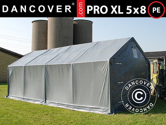 Lagertelt PRO 5x8x2,5x3,89m, PE, Grå