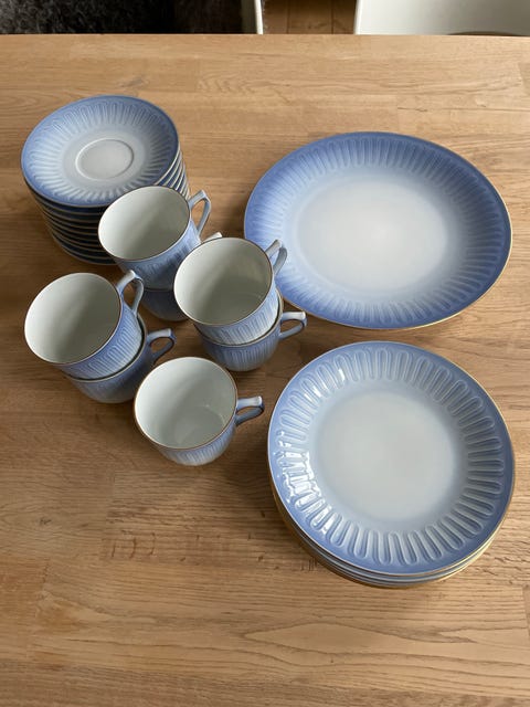 Mågestel med guld - Sukkerskål flødekande kaffekande kaffekop og kagetallerken