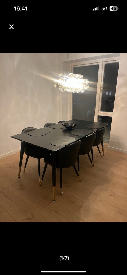 velholdt spisebord + 6 stole