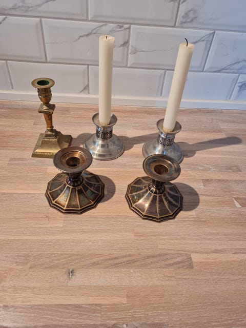 5 stk. antikke lysestager
