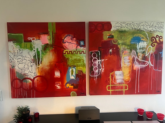 Sofie Maleri abstrakt kunst rød grøn