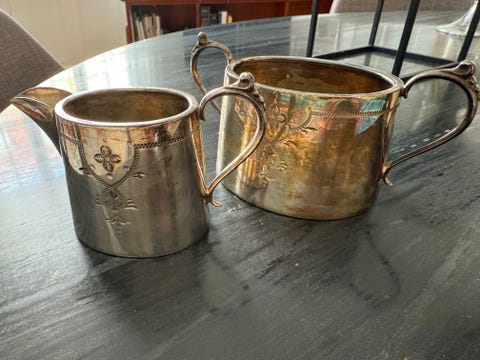 Diverse genstande i sølvplet