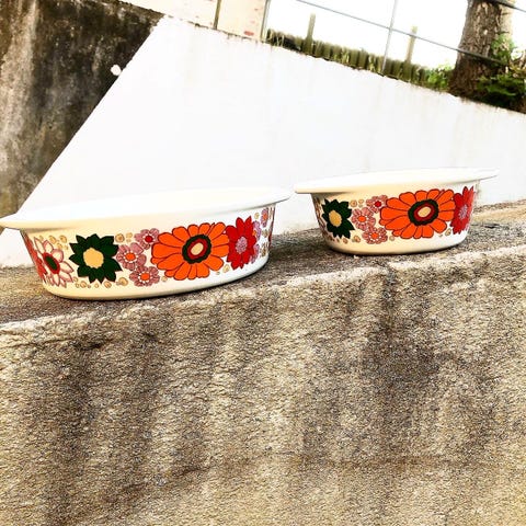 Skønne, blomstrede skåle