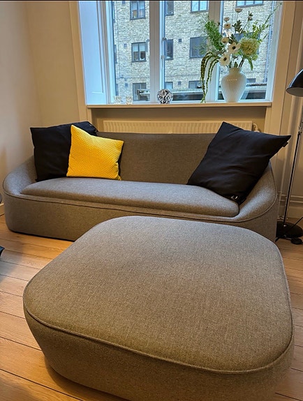 Lækker grå sofa med puf