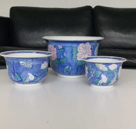 Kinesiske potte med blå/rosa