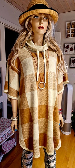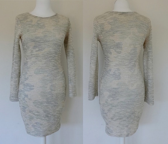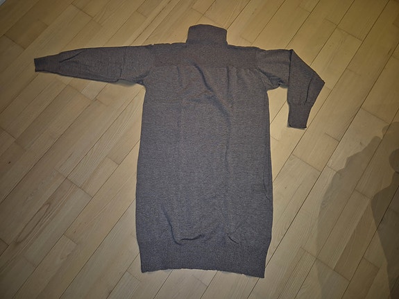 Strik-kjole. Str. 54 - 56. Beige kjole i let strik. Kjolen har høj slids foran.