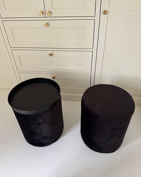 Sort velour puf med bakke