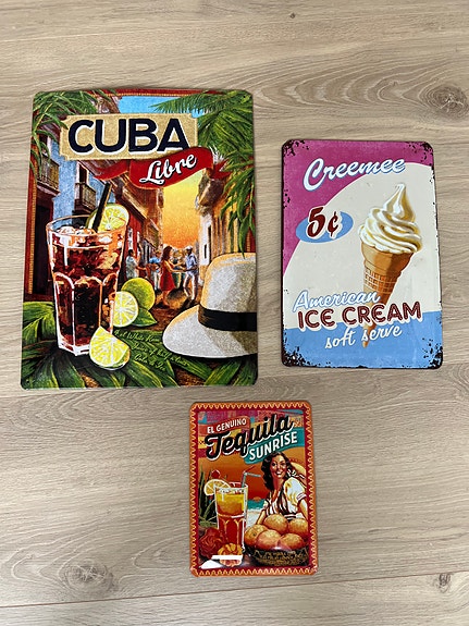 Tre Nostalgic Art skilte