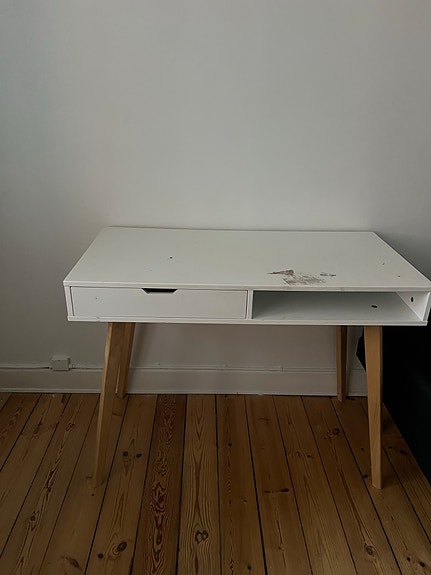 Find et brugt skrivebord til en lavere pris. På DBA er der 3.739 annonce(r), der sælger skriveborde. ## Et lille skrivebord kan gøre stor glæde Et skrivebord, der er unødvendigt for en anden, kan være det helt rigtige til dine behov. Især et skrivebord i massivt træ eller et elektrisk skrivebord kan være et dyrt køb, og du kan finde et velegnet produkt væsentligt billigere brugt. Et godt skrivebord har en velegnet højde for brugeren eller kan justeres. Når du gennemser annonce(r)ne, bør du tjekke bordets dimensioner og sammenligne dem med den bedste arbejdshøjde for dig.