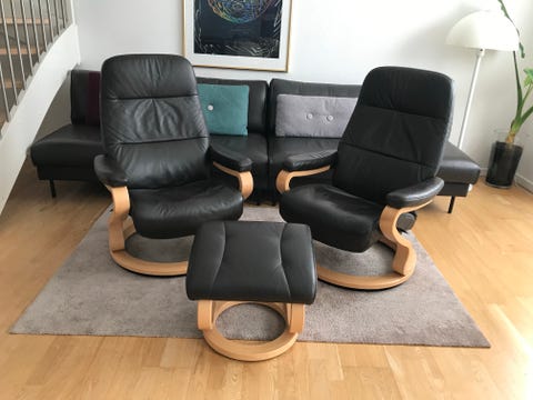 2 stk. Lænestole + 1 stk. skammel