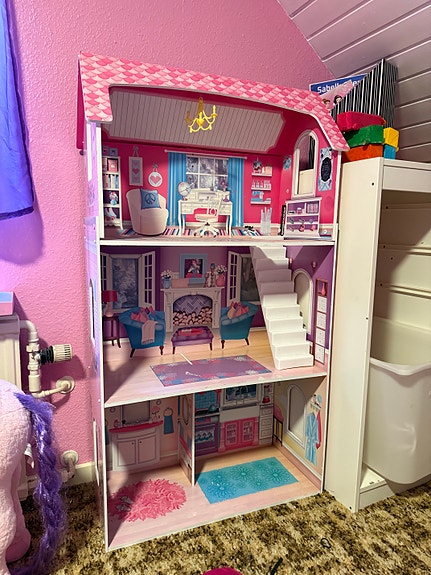 Dukkehus i træ m. tilbehør