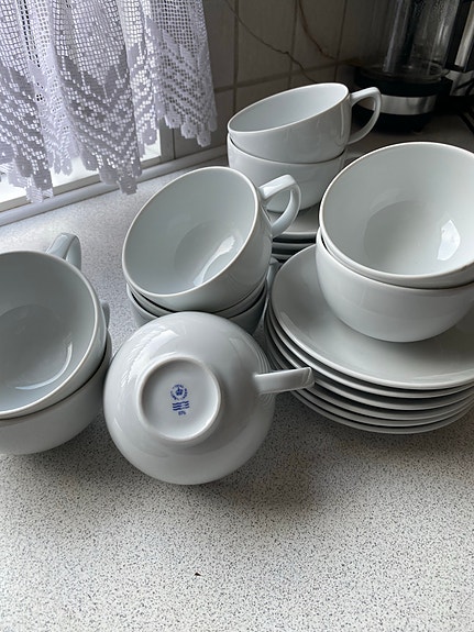 Royal Copenhagen kaffekopper og underkopper i hvid porcelæn - prisen er fast.