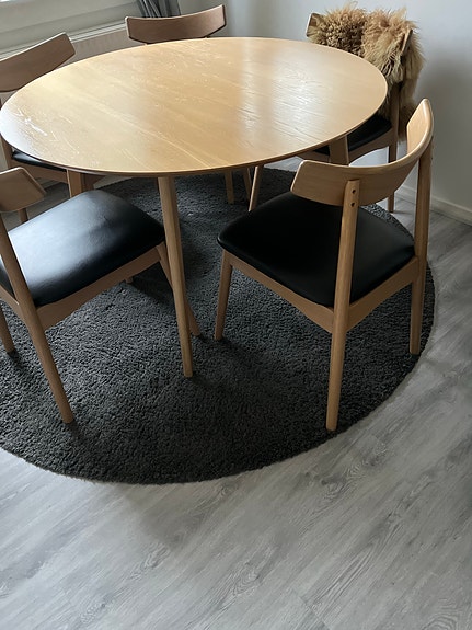 Spisebord i træ med spisebordsstole