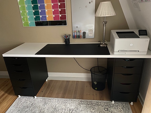 Find et brugt skrivebord til en lavere pris. På DBA er der 3.738 annonce(r), der sælger skriveborde. ## Et lille skrivebord kan gøre stor glæde Et skrivebord, der er unødvendigt for en anden, kan være det helt rigtige til dine behov. Især et skrivebord i massivt træ eller et elektrisk skrivebord kan være et dyrt køb, og du kan finde et velegnet produkt væsentligt billigere brugt. Et godt skrivebord har en velegnet højde for brugeren eller kan justeres. Når du gennemser annonce(r)ne, bør du tjekke bordets dimensioner og sammenligne dem med den bedste arbejdshøjde for dig.