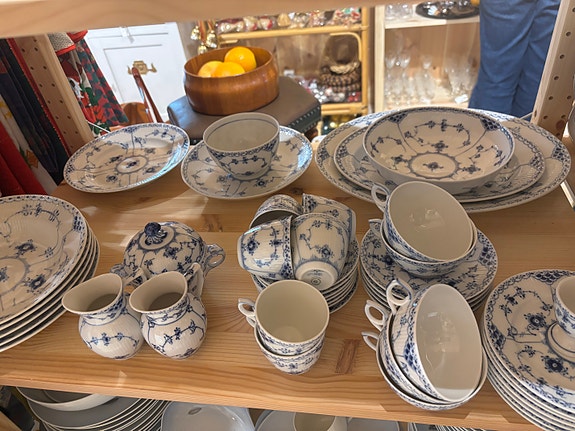 Royal Copenhagen halvblonde musselmalet stel - tallerkener, fade, skåle, kopper
