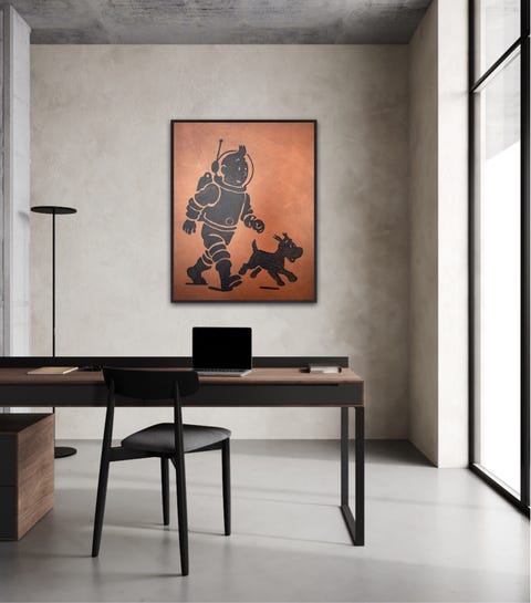Tintin på månen akrylmaleri