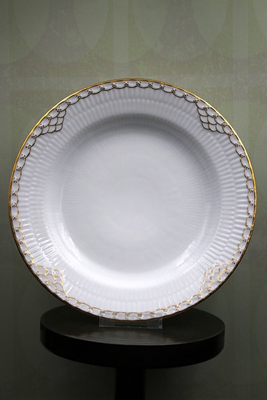 Sjælden Royal Copenhagen middagstallerken i Prinsesse med guld dekorationer.