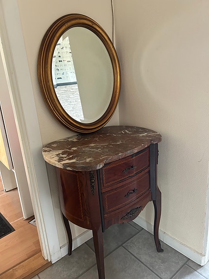 Mahogni kommode & ovalt Guldspejl.