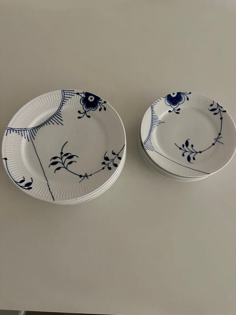 Royal Copenhagen – Musselmalet Riflet tallerkener | 1. sortering (10 stk.)