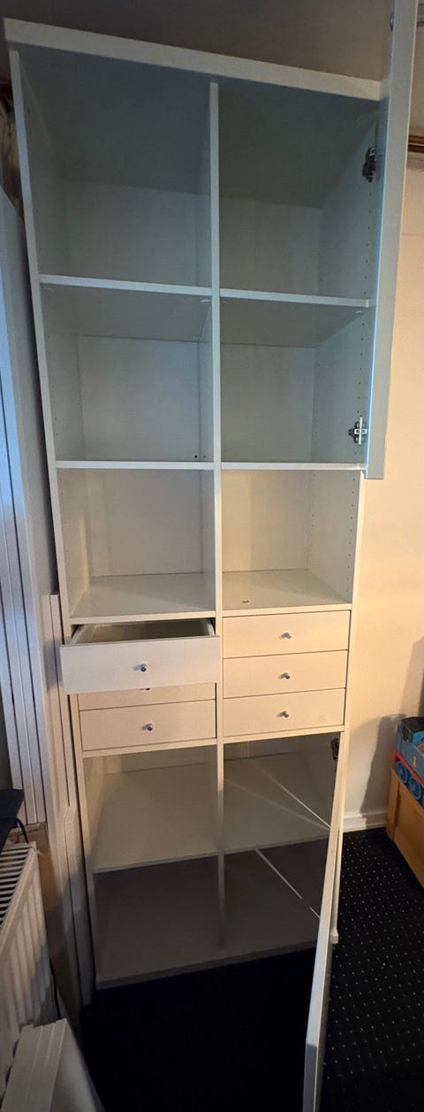 Hvid reol med skuffer
