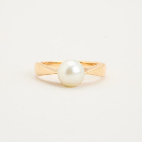 Perlering i 14K guld, Str. 59-Guld
