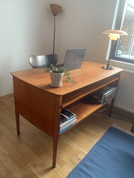 Fritstående teak skrivebord