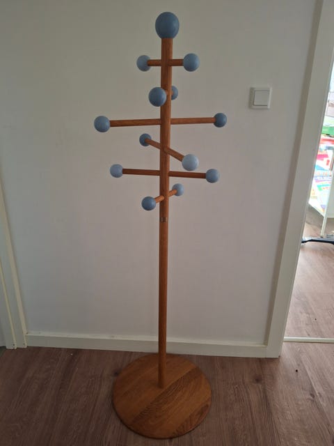 Børne tøjstativ træ med blå knager