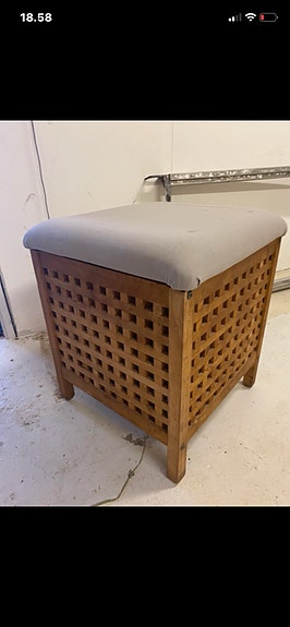 Ældre møbel i egetræ med uld
