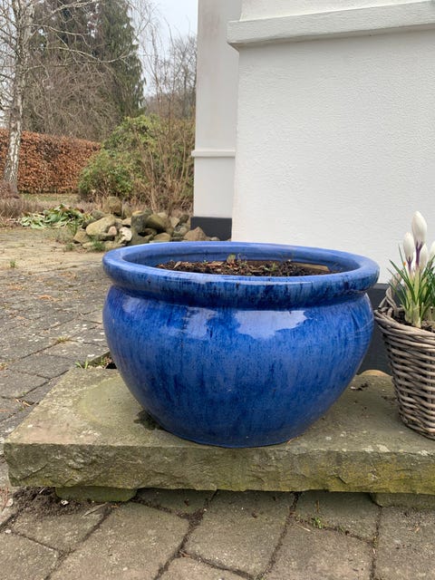 Blå keramik krukker