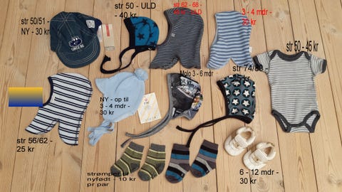 En baby har brug for tøj, der passer til enhver årstid. Babyer skal også have huer til forskellige temperaturer, for små babyer kan kun aflede varmen ved at svede på hovedet – føles babyens hoved svedigt, skal du skifte til en tyndere hue eller tage den helt af. Børnevanter bliver konstant snavsede, når børnene bevæger sig og kravler, hvilket øger mængden af vasketøj. Det er godt at have flere par vanter derhjemme. Du kan købe nogle af disse brugt og dermed spare på dit tøjbudget.