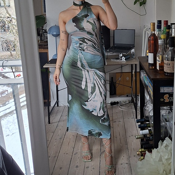 Elisa Cavaletti taupe boho kjole i viskose italiensk design str. M Made in Italy