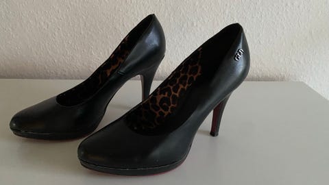 Sorte plateau-sko med rem