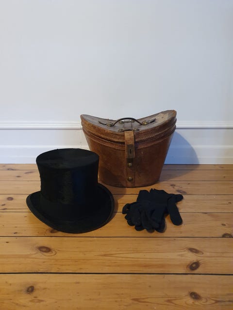 Gammel fransk hatteæske i brun læder
