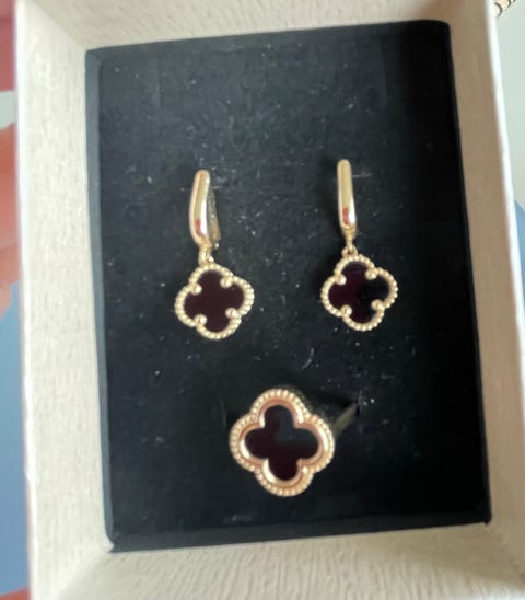 Et smykkesæt inkluderer ofte en halskæde og øreringe, og muligvis også et armbånd eller en ring. Delene i et smykkesæt passer naturligvis sammen og giver dit outfit et komplet look. Tjek DBA's 1.957 annonce(r) og se, om du kan finde det perfekte smykkesæt.