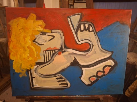 Stort maleri på 3x2 meter.