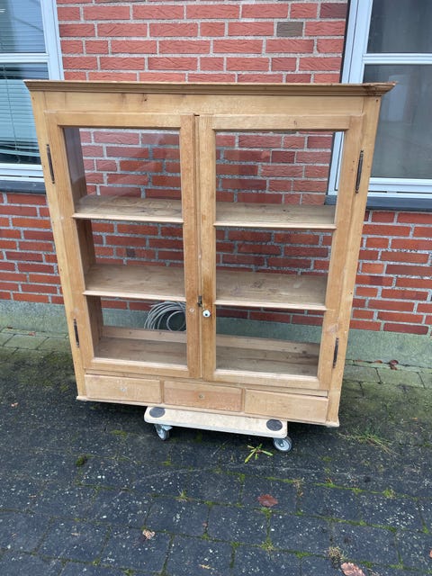 Vitrineskab i ubehandlet fyrretræ