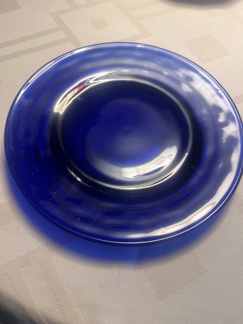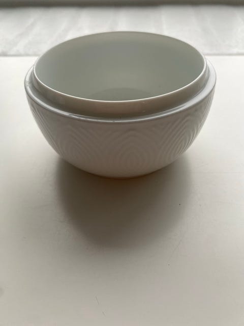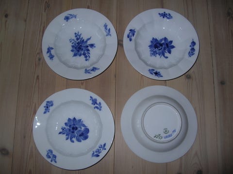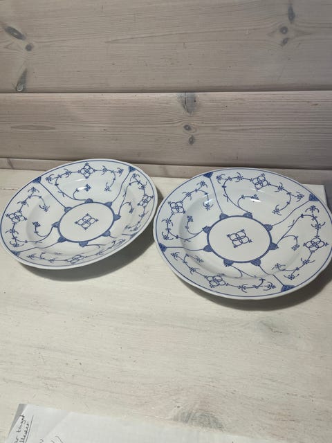 Lille dyb tallerken i Musselmalet, Riflet med tyk kant fra Royal Copenhagen.