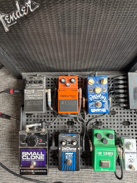 Diverse pedaler og pedalboard