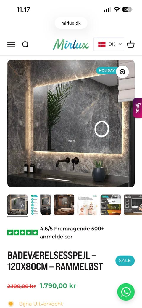 Mirlux Badeværelsesspejl 120 x 80