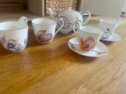 Royal Copenhagen Tekande og Kaffekopper med Underkopper Porcelæn Blomstermønster