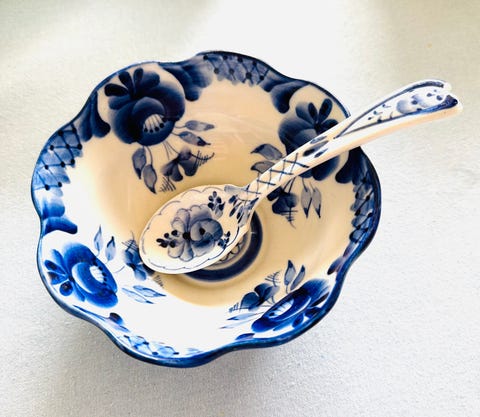 Gzhel skål og ske