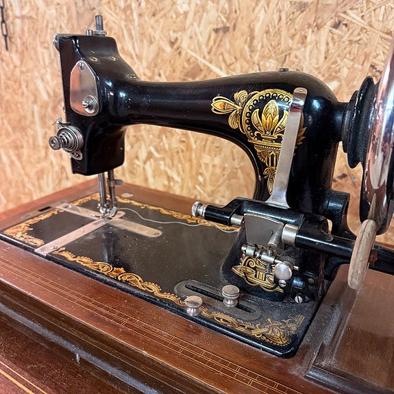 Gl symaskine med kasse
