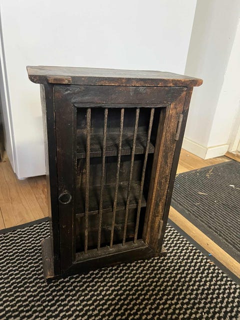 Træ skab med gitterdør