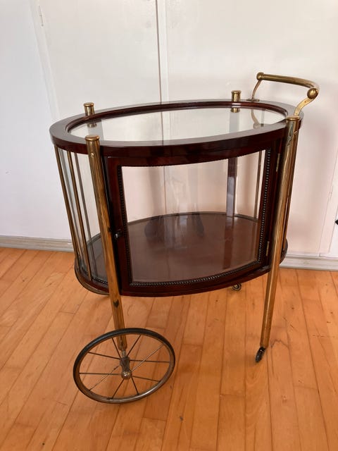 Vintage barvogn i messing og glas