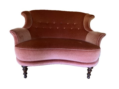 Polstret sofa i rosa stof