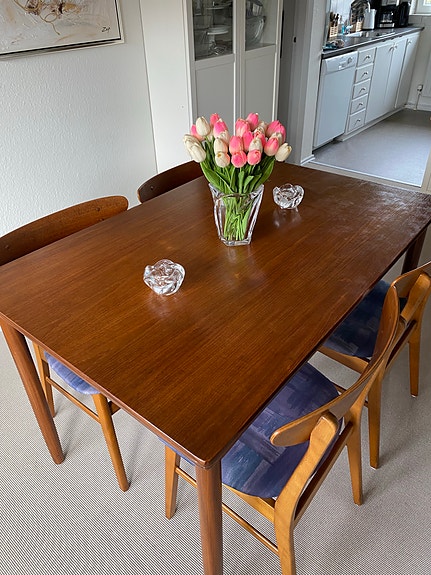 Teak spisebord og stole.