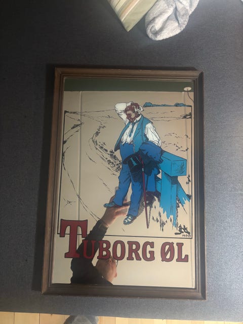 Tuborg spejl med ramme og billed