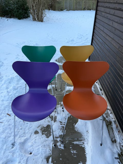 Arne Jacobsen 3207 Syver Armstole – Nypolstret i Cognac Læder & Sort Stel 7er