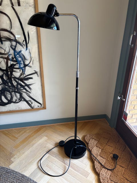 Hans Olsen Frem Røjle 1950 , Lænestol Sort skal med Teak Træramme , sæde skai ,